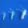 Disposable Vaginal speculum with light source (L) 1, Description: Disposable vaginal speculum is made of transparent material craftone and could prevent cross infection,with spefication of L,M and S. with FDA and CE and ISO certificates 2, Material : PS 3, Colors : Blue; True Colors; Green 4, Head is long,155 Head is breadth,34 Virginal Speculum machine an inside path;Φ31.5 5; Packing :Single a packing 100Sets/Box 470mm*380mm*460mm